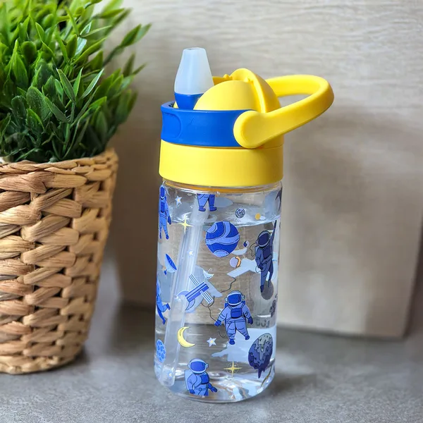 בקבוק שתייה עשוי פלסטיק איכותי מסוג טריטן, נטול BPA ועומד בתקן מזון ישראלי (5113). בעל קיבולת של 480 מ״ל, עם פיה נשלפת שנפתחת בשליפה – נוח לשימוש לילדים וללא צורך בהברגה.